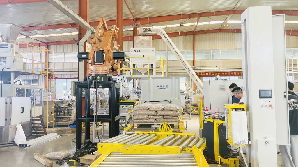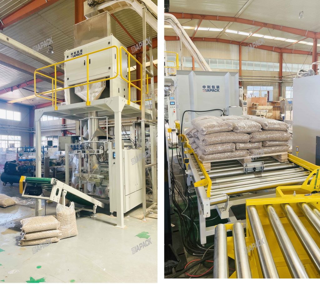 あなたはここにいる: ホーム » ニュース » 15KG木質ペレット計量充填袋詰めパレタイジングラインは出荷準備完了