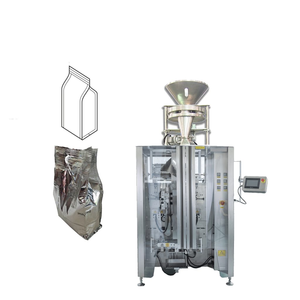 このマシンは、計量、積載材料、袋詰め、日付印刷、充填(排気)および製品の自動梱包と計数の全梱包手順を完了します。