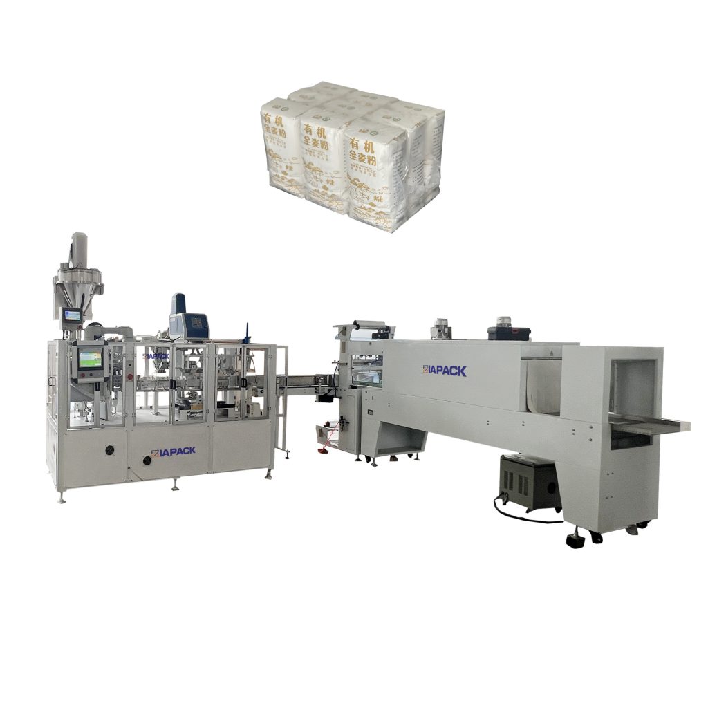 ---袋上面折り---糊付け---袋全量出力----日付コードインクジェットプリンター(意見) ---袋回収・整理---シュリンク包装(意見)---パレタイジング(意見)