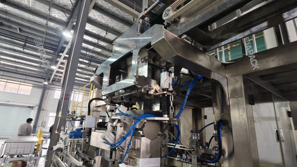 For secondary packaging (auto putting the small pouches into PP woven bag):