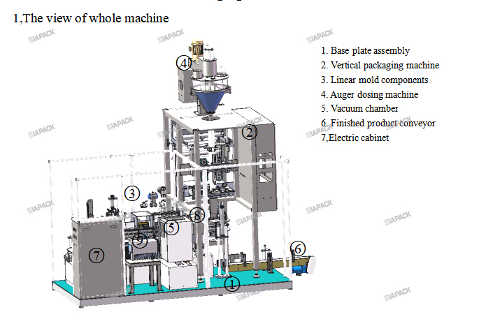 この真空包装機は、製袋、袋出し、供給、計量、材料振動、成形、真空引き、シール、完成品排出までを一台で実現し、バラ材料を高付加価値の定量成形に包装します。六面体パッケージを採用。米穀類や粉体などの穀物製品の真空包装に広く使用されています。袋の形状が美しく、シール効果も良好で、箱詰め、箱詰め、直売などに最適です。