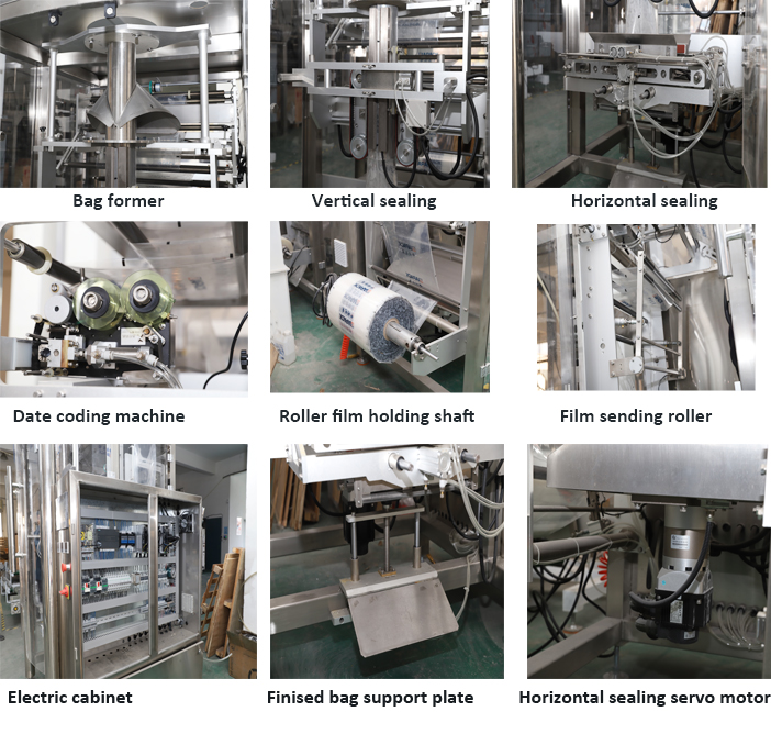 この機械ユニットには、ZL720 垂直製袋充填シール機 1 セット、ZLC-5000 4 バケット計量機 1 セット、DT3 垂直エレベーターおよび出力コンベア機 1 セットが含まれます。機械ユニット全体で、自動製袋、製品計量、製品充填シール、日付コーディングが可能です。スラット、洗剤粉末、米、豆、その他の粒状製品の梱包に広く使用されています。